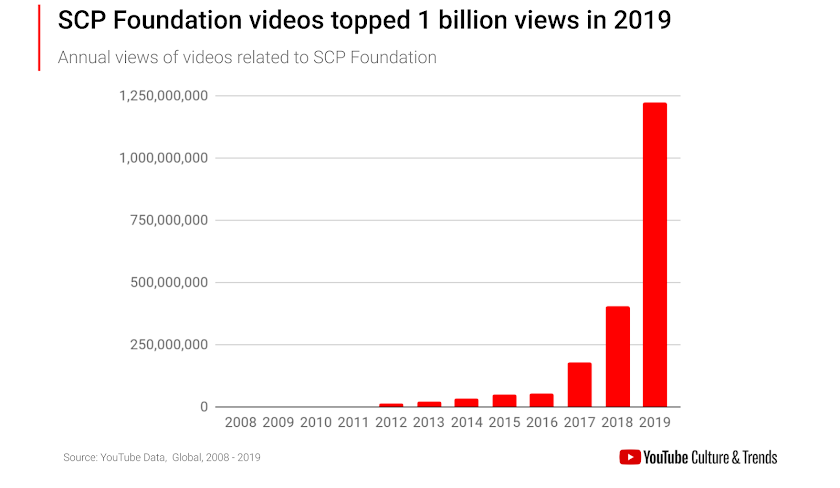 Global viewership of videos related to SCP Foundation topped 1 billion views last year.