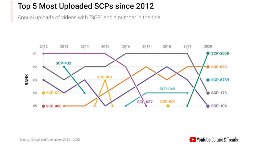 Source: YouTube Data, global, 2012 - 2020 * SCP-6789 aka Siren Head is not an actual SCP