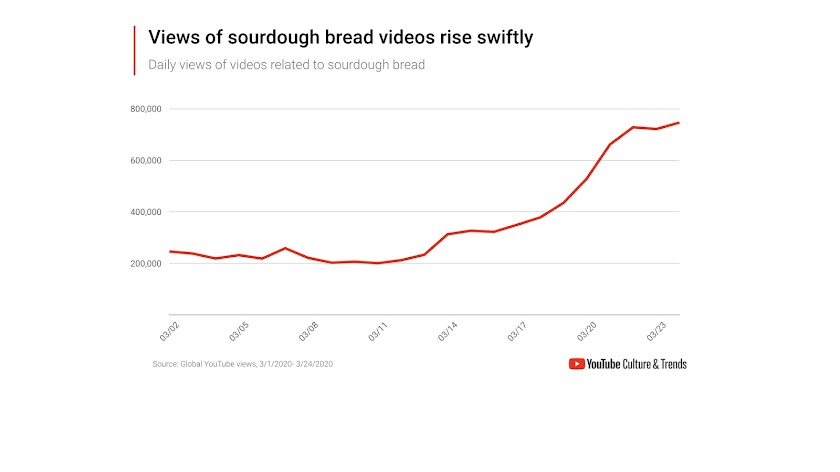 - Uploads of videos related to "sourdough bread" hit an all-time high in March 2020.