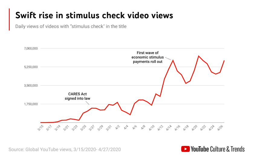 Swift rise in stimulus check video views