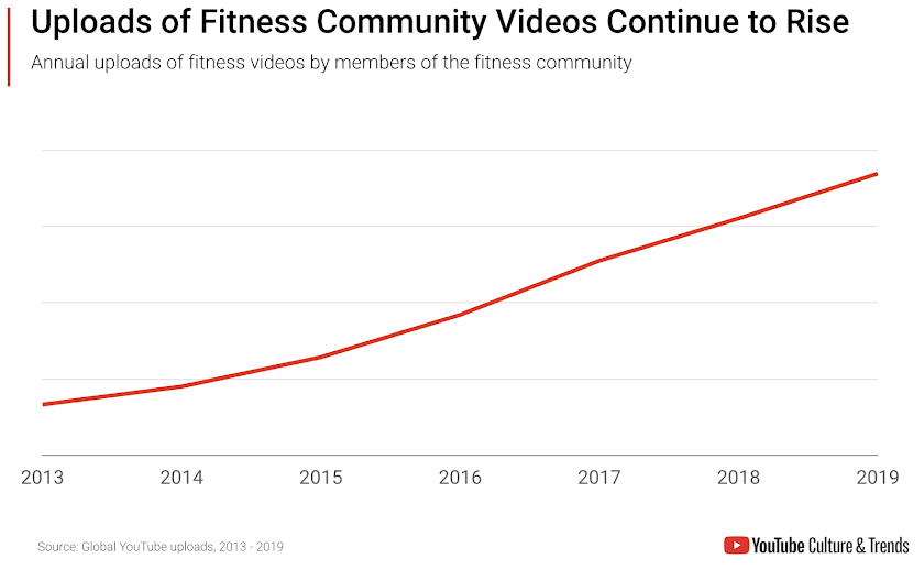 - Yoga Continues to Grow: The number of uploads of yoga-related videos from the fitness community have continued to grow steadily every year, hitting an all-time high in 2019.